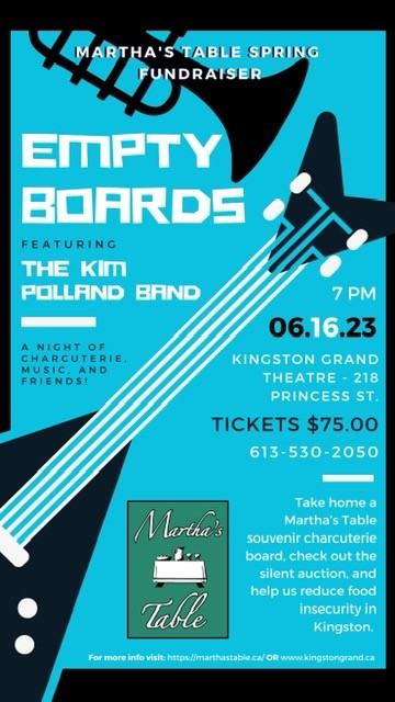 Go to Empty Boards Fundraiser | Kingston Grand Theatre ( www.kingstongrand.ca/events/empty-boards-fundraiser ) or call 613 530 2050 Monday to Saturday 12 – 430pm or two hours before any performance to get your tickets!