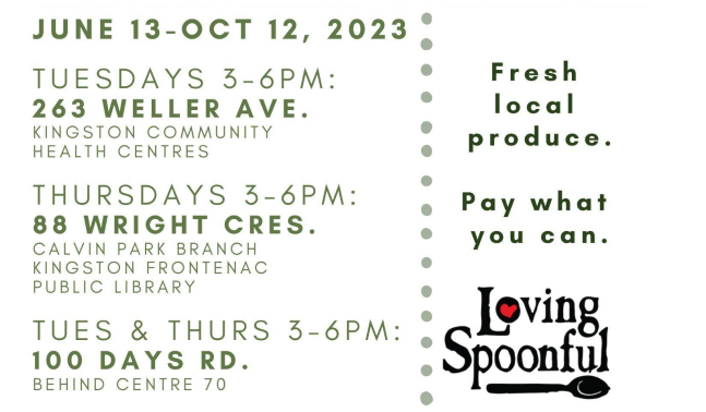 Community Harvest, a grassroots food security initiative, became a Loving Spoonful program in 2022. Community Harvest runs three collective urban agriculture sites throughout Kingston. Loving Spoonful also has a 2-acre urban farm at 100 Days Rd., next to Lakeside Community Garden.