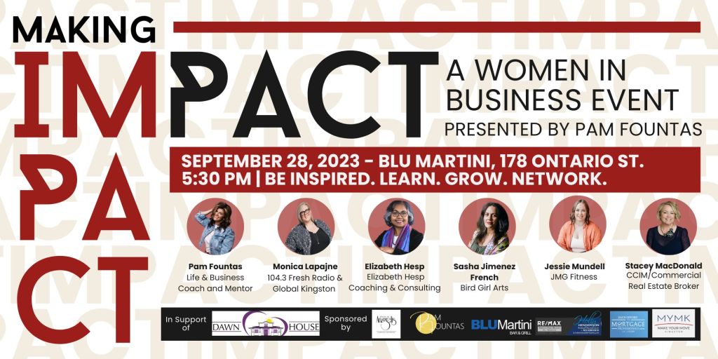 Join Life and Business Coach, Pam Fountas, as she leads the way in an event that guarantees to inspire, motivate, equip you with invaluable tools and insights, and provide you with a valuable networking opportunity—all while having a blast! Because making an impact should be FUN!