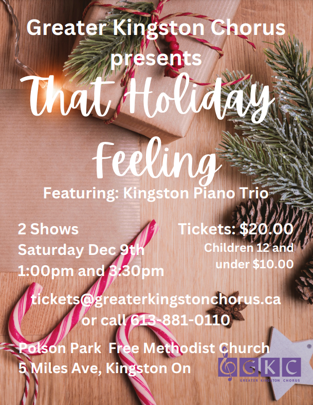 GKC presents ‘That Holiday Feeling’ featuring Kingston Piano Trio Where Polson Park Free Methodist Church, Kingston Map When Dec 09/23 01:00 PM - Dec 09/23 05:00 PM Age All Price Starting at $20 Buy Tickets 2 Shows: Saturday Dec 9th 1:00pm and 3:30pm. Tickets $20.00 adults, Children 12 and under $10.00