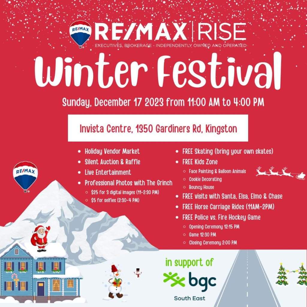 The RE/MAX RISE Winter Festival in support of BGC South East (formerly Boys and Girls Club) will take over the Invista Centre on Sunday, December 17th and become a fun-filled winter event for the entire community. A few of the event details include skating, wagon rides, raffle prizes, kid’s zone/activities and a holiday vendor market. Mark your calendars and be sure to come out to this great event!