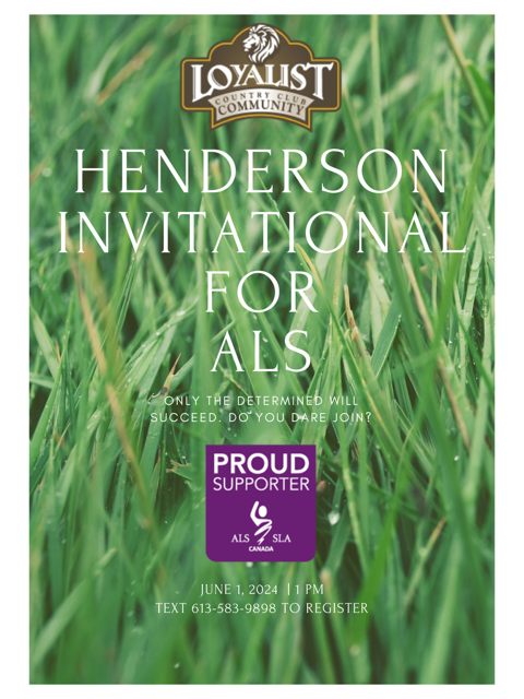4 person scramble (minimum 1 female); $500 per team, shot gun start, dinner included. All proceeds donated to ALS Society of Canada