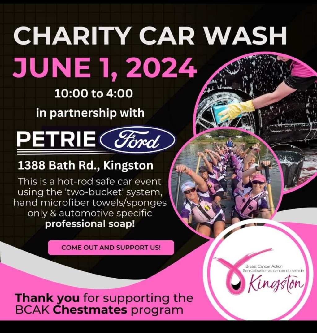 Breast Cancer Action Kingston & South East Ontario Charity Carwash Where Petrie Ford, Kingston Map When Jun 01/24 10:00 AM - Jun 01/24 04:00 PM Age All Website https://www.bcakingston.ca/