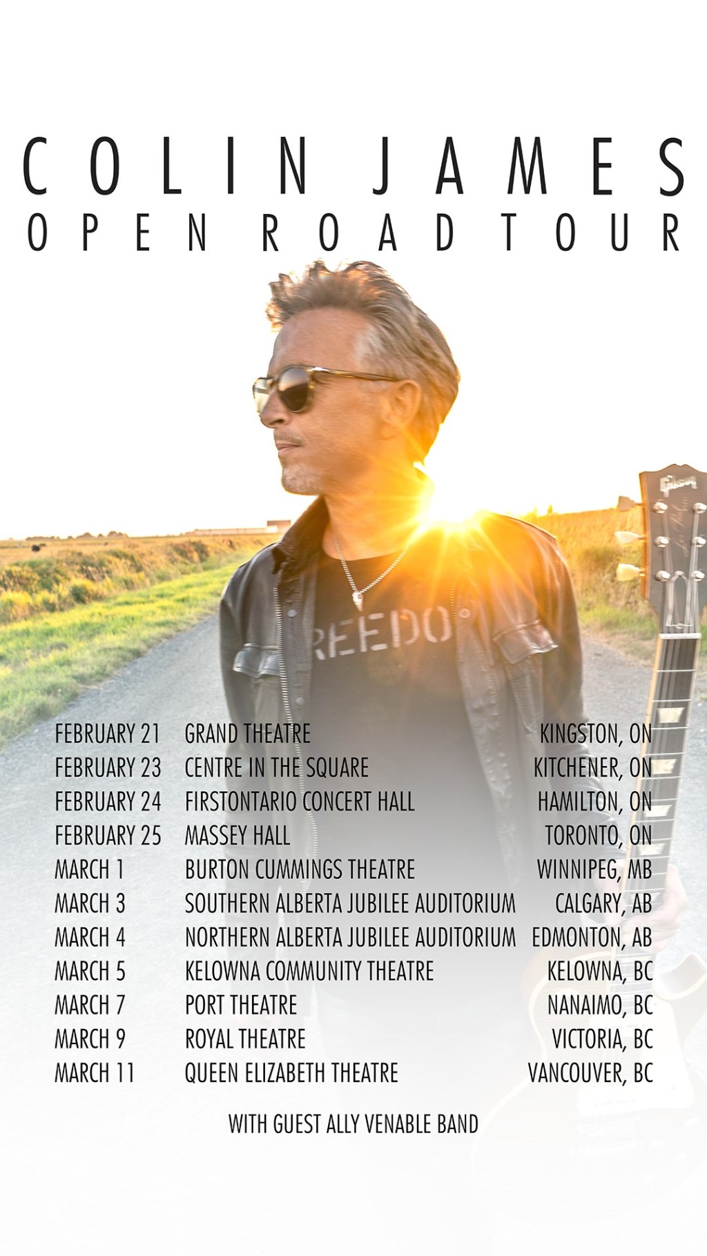 Colin James has taken those words to heart. His career has spanned over 30 years, with a track record that includes 20 studio albums, 7 Juno Awards, 27 Maple Blues Awards and multi-platinum record sales. His latest release, Open Road, is a celebration of personal connections. It includes original tunes written with long time collaborators such as Colin Linden, Craig Northey and Tom Wilson and reinterpretations of covers by a diverse group of songwriters including Bob Dylan, Albert King, Tony Joe White and others.