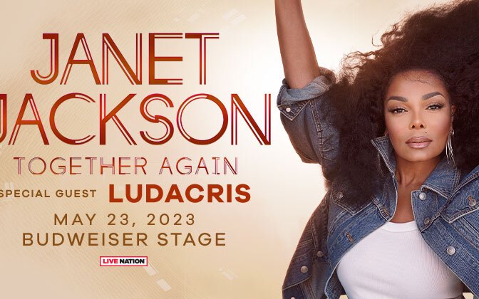 Budweiser Stage, Toronto Janet Jackson will be setting out on a North American tour with a stop at Budweiser Stage in Toronto, May 23, 2023! She will be joined by musical guest, Ludacris. More details at janetjackson.com or through Live Nation.