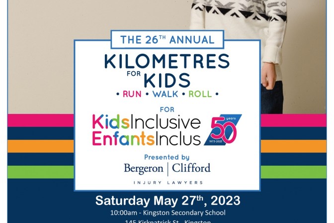 Kingston Secondary School, 145 Kirkpatrick Street, Kingston The 26th Kilometers for Kids is a Run, Walk or Stroll to help raise money and awareness for Kids Inclusive. The Run/Walk/Roll for KidsInclusive is our sole fundraising event and is known as much for its incredible spirit as for the number of people who hit the streets to raise funds for our clients […]