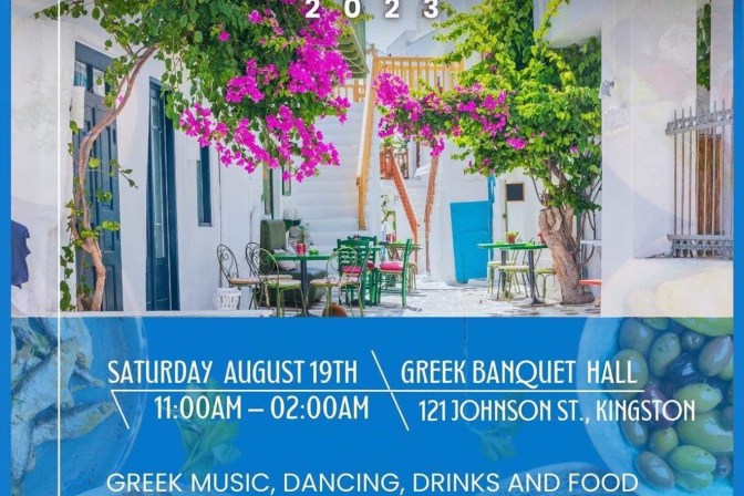 Greek Banquet Hall, 121 Johnson St, Kingston It’s nearly time for Greek Festival 2023! At the Greek Banquet Hall at 121 Johnson Street on August 19 from 11am until 2am. Join us for dancing drinks & live music provided by Olympic Entertainment Greek Band! Admission is non-perishable food item(s) or a cash donation in support of Partners in Mission Food Bank!